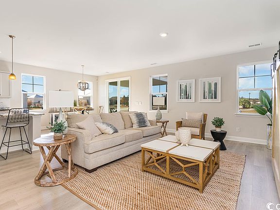 Waterbridge community is in the sought-after Carolina Forest area. Minutes from grocery stores, shopping centers, golf courses, attractions and the beach! The community is filled with resort-style amenities that make it hard to leave home. This gated community features a clubhouse, the “largest residential swimming pool in SC”, fitness center, tennis, pickleball, basketball, volleyball, and bocce ball, a lake and boat launch! This popular plan brings functionality and style together! Incredible curb appeal is an understatement given the stacked front porches and tall entry door. Once inside, beautiful laminate wood flooring creates an inviting space and numerous windows bring in fantastic natural light. Off the entry is a spacious flex room. The large kitchen boasts quartz countertops, an oversized island, stainless appliances, a walk-in pantry, and a gorgeous Butler's pantry. Spacious bedroom and full bathroom on the first floor is great for guests. Upstairs you will find the grand owner's suite with a cozy sitting room, huge walk-in closet, and en suite bath with large separate vanities, linen closet, and tile shower! This home will also have the third floor walk-up attic for extra storage! *Photos are of a similar Harbor Oak home. (Home and community information, including pricing, included features, terms, availability and amenities, are subject to change prior to sale at any time without notice or obligation. Square footages are approximate. Pictures, photographs, colors, features, and sizes are for illustration purposes only and will vary from the homes as built. Equal housing opportunity builder.)