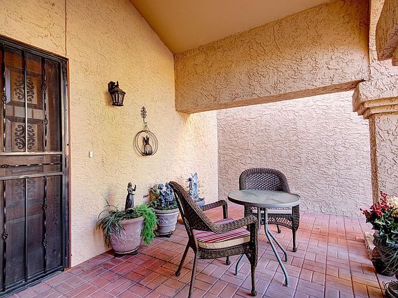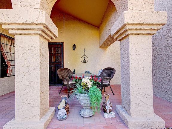 Don't miss out on this charming single-story townhouse in Chandler! Delightful courtyard style paver patio entry welcomes you into this cozy home. Step into the large living room and notice the high ceilings, decor paint, and beautiful brick fireplace, hearth and wood mantle. French doors off-set the fireplace and add luxury to the interior space. The separate dining area is light and bright with easy access to the kitchen featuring lots of counter space and attractive newer white appliances. The master retreat boasts gorgeous french doors and it's own master bathroom and his/her closets. A second bedroom also features lovely french doors and built in bookshelves. Venture outside to the comfortable covered, paver back patio with no maintenance. The cul-de-sac location has the perfect quiet, neighborhood atmosphere. The community features two sparkling pools to enjoy all year long!
