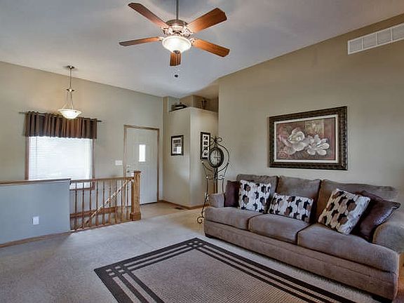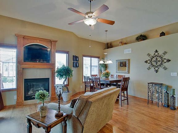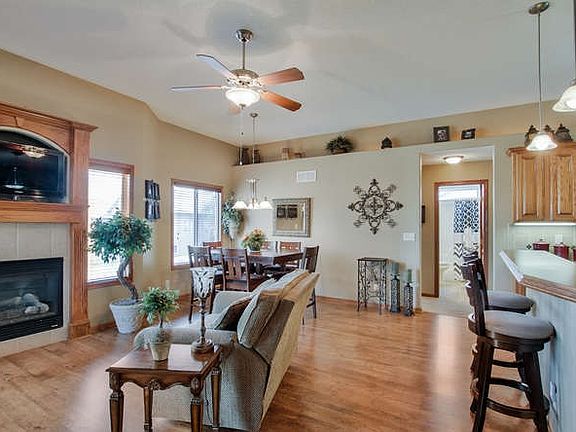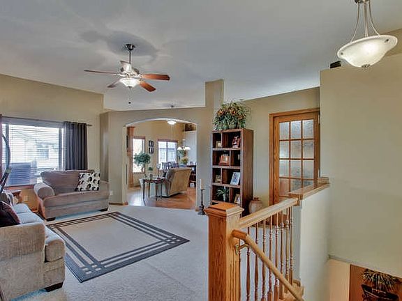 Beautiful Ridge Port ranch home featuring 5 bedrooms & 3 baths with partial lake views from the back deck! This home is clean and shows pride of ownership! This Randy Dean built home features beautiful arches and plant ledges throughout. The gas fireplace is the focal point in the hearth room/dining area that also opens up to the kitchen and features beautiful floors and newer electric Range (Gas is available). The kitchen has a nice layout and plenty of cabinet space and crown molding accents the Cabinets. The sleek stainless steel and black appliances round out this user friendly kitchen. The view out basement is completely finished with 2 more bedrooms and 1 more bath. The wet-bar flows nicely with the large rec room and entertainment areas. The surround sound built-in speakers remain with the home. This home has been well cared for with new main floor paint and attention to detail. Beautiful covered deck area with east facing rear for shaded evenings. The fenced yard features an irrigation well and sprinkler system. This home is clean!!