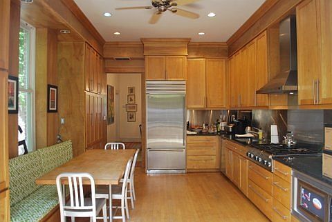 Furnished four bedroom house two blocks from Georgetown University and M Street. Available for June and July. Newly renovated family home. Main floor includes open living room, dining room and large eat-in kitchen with granite countertops, high-end appliances and built in banquet table that easily seats 8 people. Main floor inclues a half bath. Three bedrooms upstairs. Master bedroom includes attached bathroom and walk-in closet with full length south facing french doors. Middle bedroom has a skylight and built-ins for storage. Third bedroom is large with three closets. Separate full bath on second floor. Fully finished basement with separate street access and full bathroom. Enclosed brick patio with existing landscaping. Side patio includes gas fired grill and space for trash bins, bikes, etc. Great location on a well lit street with excellent neighbors. Easy street parking (DC permit required). Less than 1 block to G2 bus stop and 3 blocks to other main bus routes. 2 blocks to main campus entrance.