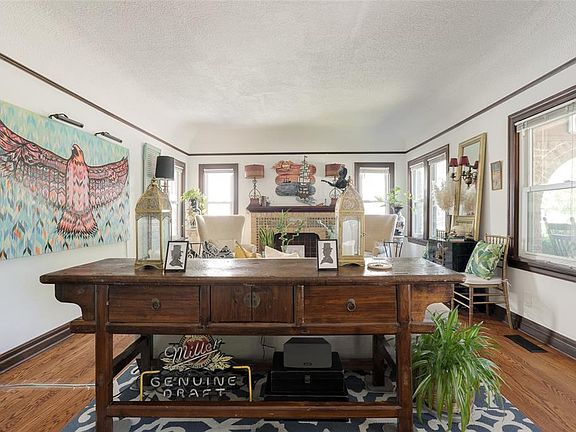Aren’t Tudor revival bungalows just the best, with their wide, shady porches, intricate masonry and arched doorways? This one, lovingly updated in Linwood Place, is extra special. The home faces the 19th Street boulevard, and its spacious covered porch works as a versatile extra living space. You’ll most certainly want to begin and end the day there. Its bones have been kept clean and classic – a ready canvas for your own unique style. With so much natural light, white walls, original floors in most and classic updates in the kitchen and bath, you could easily transform this dream bungalow into a chic old-English or French country cottage, a sleek, cool mid-mod oasis or a cozy, casual mix of a little of this and a dab of that. Its current owner has spent eleven years turning it into an art-filled, vintage lover’s oasis, while smartly embracing a neutral colorway where it counts. There’s a barrel ceiling in the living room. Its original woodwork and California art tile fireplace surround are exquisite. The large center tile features a covered wagon scene done in bas relief, likely from Muresque Tiles of Oakland, an artisan company of the era. In the dining room, the barrel ceiling, painted a soft sherbet pink, brings to mind an Oklahoma summer sunrise. Smart renovation in the kitchen includes white subway tile backsplash, granite countertops and a combination of open and traditional shelving. A small, brushed nickel bar has room for two petite stools. A wide central hall contains a built-in telephone desk and alcove; another alcove is in the living room. Both bedrooms are spacious enough for king beds. The west bed opens onto a deck with room for a bistro set or small sectional. There’s a fireplace, a second, stone paved deck area, a koi pond, beds of glorious mature irises and room to flex your own green thumb. Linwood Place, a historic enclave, is moments from downtown, or anyplace you need to be. Fair warning: it’ll be pretty hard to leave that front porch!