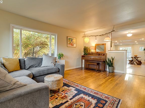 Country feel in Milwaukie! Move in ready home offers wood floors, big windows, large kitchen and dining room, primary bedroom features ensuite bath. The park like yard is an urban farmer's dream with raised beds, blueberries, herbs, Persimmon, cherry, apple and fig trees. Beautiful views of giant oak trees out all the windows. Near Stringfield park, and the trolley trail bike path for direct bike-able access to Portland! Just a few blocks to river access! Newer roof, plumbing & electric panel.