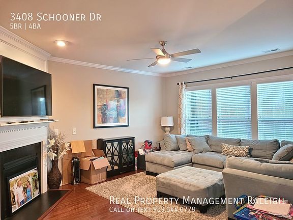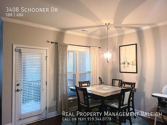 This 3873 square foot single family home has 5 bedrooms and 3.5 bathrooms. This home is located at 3408 Schooner Dr, Cary, NC 27519.