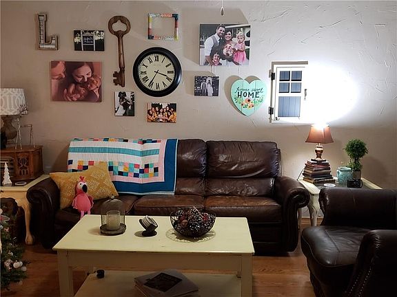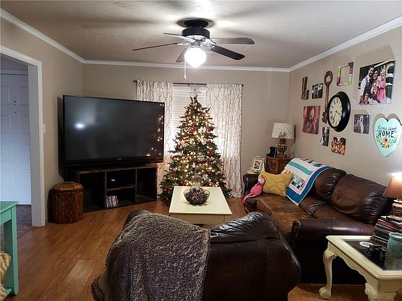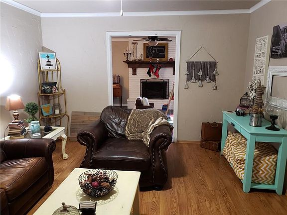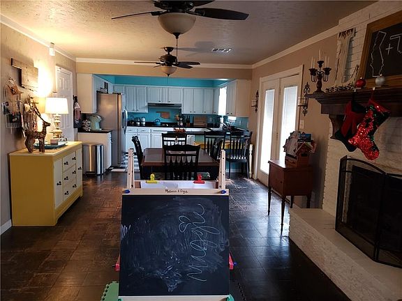 Nice, trendy style Ridgecrest home! 3 bedrooms. 2 bathrooms. 2 car garage. Fireplace. Distressed hardwood flooring. Versatile floorplan with two(2) living areas or flex room which could be a formal dining area, study, etc. Spacious kitchen. Shows great! Large backyard with storage building and basketball goal on slab. ***STORM SHELTER*** .