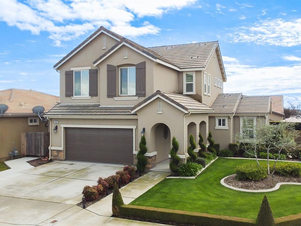 Amazing opportunity to purchase this move-in ready McCaffrey home, nearby Clovis East High and the Reagan Educational Center! At drive-up, you will immediately notice the wonderful curb appeal this home offers on it's large corner lot, with picture perfect custom landscaping! Home has an OWNED 4.91 kW solar system, with 15 panels! At entry, you will find tile plank flooring throughout first level. You'll love the open concept, allowing for you to entertain your company in the kitchen, dining area, and great room. Lots of windows brighten this space and also includes custom window shutters. Kitchen includes granite countertops with tiled backsplash, center island, pantry, and stainless steel appliances. Lower level also includes a powder room, and large slider to backyard. Staircase is upraded with wrought iron, and leads you to three bedrooms, and two bathrooms upstairs. At hallway, you'll find the built-in desk, perfect for the students in home. Master bedroom is large, with private bathroom, and includes a walk-in closet. Master bathroom features a large soaking tub, separate shower, and his and her sinks. Step outside, and you'll find a great space for relaxing while you sip your morning coffee, or entertaining your company! There's a large concrete covered and extended patio with ceiling fans, manicured privacy bushes along fence with solar lighting, and fresh limes from your matured trees! Ask your Agent for the list of upgrades on this one, and hurry, before it's sold!