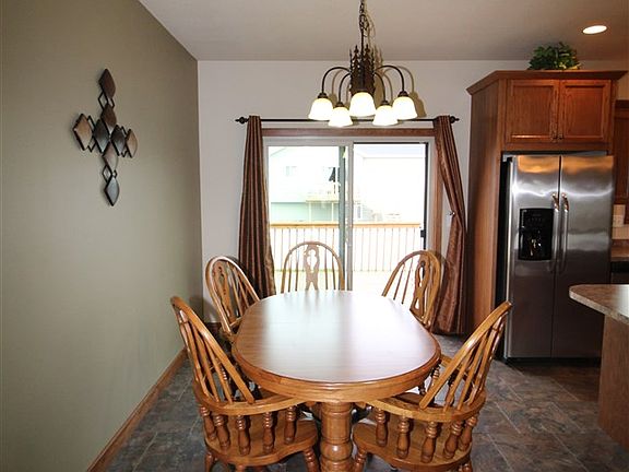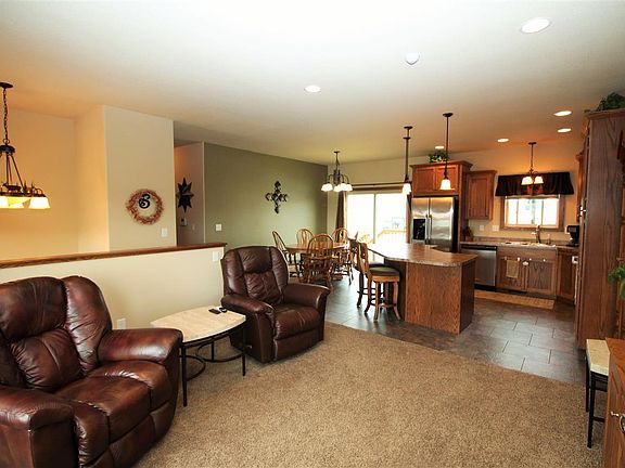 Welcome Home! This next to new split-foyer is sure to impress! Upon entering you will immediately notice the pride of ownership this home conveys. Gorgeous custom woodwork/cabinetry, modern fixtures, 9" ceilings and more! The kitchen features stainless steel appliances, oversized island, pantry and duraceramic flooring that flow flawlessly into the dining area. The master suite has a symmetrical layout with 2 oversized windows, a walk-in closet and the en suite with dual sinks, oversized vanity and duraceramic flooring. Bedroom 2 is good sized with carpeting and the main bath has plenty of storage! Heading downstairs you will find an ENORMOUS daylight family room with amazing stone fireplace and plenty of recessed lighting - tons of room to accommodate multiple furniture arrangements. Bedroom 3 is large with carpeting, there's a 3rd full bath and large laundry/mechanical room to round out this level. The triple attached garage is fully finished with heat, floor drains and convenient access to the backyard with bonus roll-up door! No expense has been spared with the exterior - vinyl privacy fence, oversized deck, stamped patio, sprinkler system, hot tub hookup and professional landscaping. Don't forget about the side parking pad, perfect to store extra toys! It's the location you've always wanted in SE Minot's Woodside Addition; close proximity to the Minot Country Club, walking paths and Radio City Park with splash pad. Check this home out today!