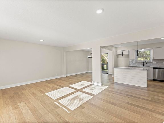 Contemporary touchesSleek quartz countertopsOpen light-filled living spaceUpdated kitchenStainless steel appliancesCrisp white cabinetryEat-in island