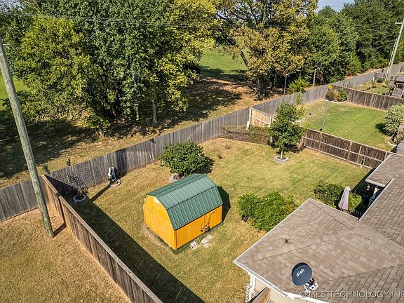 Sellers added an outside storage building. Great covered front porch with oversized back patio. Easy access to Broken Arrow and South Tulsa via the Creek turnpike and the BA Creek loop. Fabulous Bike trails, Parks, shopping, restaurants, medical services and the Rose District all within a 8 mile radius.