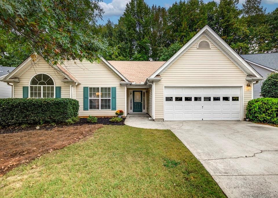 Beautifully updated ranch home is conveniently located in the swim/tennis community of Liberty Commons. This property affords one of the largest floor plans in the neighborhood and is nestled in a peaceful, private, wooded lot that backs up to green space, making one of the most sizable backyards in the community feel even bigger. This home has been transformed with fresh paint throughout and new luxury vinyl plank floors in a rich deep brown throughout the entire house. Updated lighting and fixtures in living areas make the space feel like new. The roomy kitchen has plenty of counter space and storage, separate pantry, and island with seating that makes food prep a breeze! Wood burning fireplace in the great room is ready to go for the cooler weather, and the easy flow of the floor plan provides just the right amount of openness and separation of spaces. Recent repairs and upgrades include the architectural shingle roof, 3 years old; HVAC and water-heater with always hot water to primary under 5 years old. The water line from the meter to the house has been completely replaced, one more concern to take off your list! The Liberty Commons HOA provides front lawn maintenance, sidewalks, swimming, tennis, and children's play area. This beautiful neighborhood could not be better situated: near excellent schools and KSU, Swift-Cantrell Park, shopping, restaurants, and close to I-75 with convenient access to all points north or south towards Atlanta. This one makes it easy!