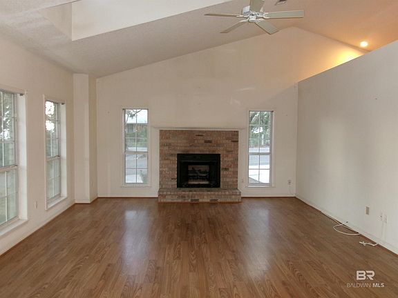 Welcome your guest into an inviting foyer that opens into large family room. A charming home that offers 3-bedroom home. Large Living room with brick gas fireplace, vaulted ceilings, Sky Light, planter edge above adjoining kitchen wall. This home offers additional space for office/library or nursery room. The bathrooms have beautiful tile floors, large vanities and nice size closets. The long hallway offers two large closets with lighting. This home is in a private setting with a view of large waterfront estates. Enjoy your morning coffee in the large screen patio, large concrete patio with pergola, extra outside storage area, yard building and garage has abundance of storage cabinets. Very private, family friendly, quite area and secluded neighborhood. The living room has bay views under a canopy of oak trees, gas brick fireplace and vaulted ceilings with sky light. Completely updated kitchen equipped with large pantry, laundry/utility room w/shower wash off from the heat of the summer enjoying your back yard, fishing from the neighborhood pier. Home interior has just recently been painted. The subdivision is one of the most beautiful neighborhoods on Perdido Bay. This entire subdivision enchanted with the large Spanish oaks throughout the neighborhood. This home is One-of-a-kind property in a very unique community of Perdido Bay Oaks. Home is located less than1 block from public boat ramp, (5 minutes) Florida State line, Fire Department, numerous cafes, churches, walking park and many other amenities in the Lillian area. Lot has additional parking for RV, boat, jet ski, and guest parking. NEW PICTURES WILL BE ENTER SOON. HOME JUST COMPLETELY PAINTED.