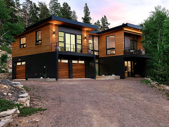 Nestled in the pristine landscapes of the foothills this striking 3-bedroom (studio/gym could be a fourth bed if needed), 3-bathroom custom-built residence that offers an impressive architecturally designed home for those who appreciate a blend of modern aesthetics and functional elegance. As you enter the property, you will be greeted by an awe-inspiring modern architectural masterpiece, seamlessly integrating polished concrete floors that add a sleek, minimalistic feel to the spacious interiors. The abundant use of glass maximizes the entry of natural light, illuminating the home throughout the day and offering unobstructed views of the surrounding landscapes. The living room, designed with meticulous attention to detail, features smart lighting systems that adjust to create the perfect ambiance for any occasion. Central to this space is a wood-burning fireplace, promising cozy warmth on chilly winter evenings and adding a touch of rustic charm to the modern decor. Culinary enthusiasts will delight in the smart, state-of-the-art kitchen equipped with a smart oven and high-quality appliances, set against custom cabinetry and sleek countertops, providing both style and practicality. This space is perfect for preparing gourmet meals while entertaining guests or enjoying peaceful family dinners. The Primary suite is definitely the jewel in the crown boasting the spa-like master suite. This luxurious sanctuary includes an en-suite bathroom equipped with a jetted soaking tub, steam shower and serene finishes that create a tranquil spa atmosphere. Radiant underfloor heating throughout the home ensures your comfort at every turn, maintaining a warm and inviting atmosphere no matter the season. Step outside to the natural beauty that the Colorado rockies has to offer enjoyed from the privacy of your own home. The thoughtful design continues with a side load garage door, conveniently accommodating snow removal vehicles essential for mountain living.