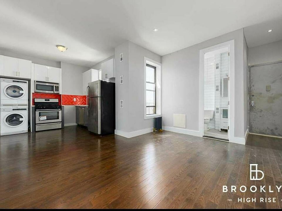 A fully renovated 2 bed with high ceiling and plenty of led lighting Kitchen is updated with all Stainless Steel appliances Dishwasher. Microwave. Laundry in the unit Common area space 2 rooms that have plenty of sunlight with hardwood floor. Closet space Fully tiled bathroom No fee year lease only Near G,F train close to Church Ave Near great Deli, Coffee shops, Ice Cream House 3 min walk!!