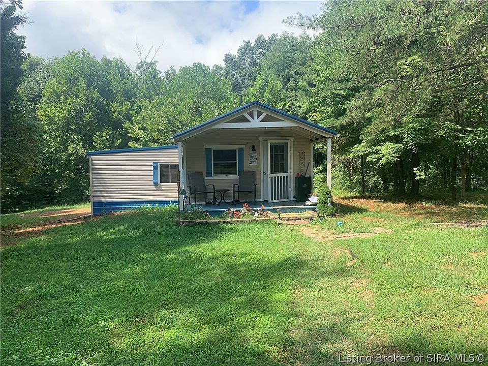 Wow ready to run away from city life and downsize?? or just want to simplify your life and cut your utility cost down?? Well this Bardominium/tiny home may just be what you're looking for. This home is sitting on almost 5 acres in Elizabeth Indiana. Sellers have built an adorable home here with lots of great detail inside of the home utilizing all the space perfectly. This home was built in 2018 as a 14 x 40 shed, it was placed on a block foundation and then turned into a great living space. Seller has insulated the home inside and out. The home also has a stick built 12x24 room addition that is utilized as the master bedroom. Inside the home there is an open floor plan with a fully functional kitchen, living room, full bathroom and a master bedroom offering a jetted tub and laundry. Everything in this home is approx 4 years old. The home has a septic system, city water, and electric. This would also make a great hunting spot or just a get away from the city life. There is pleaty of parking and room to grow on this land. Call today for your showing Sq ft & rm sz approx.