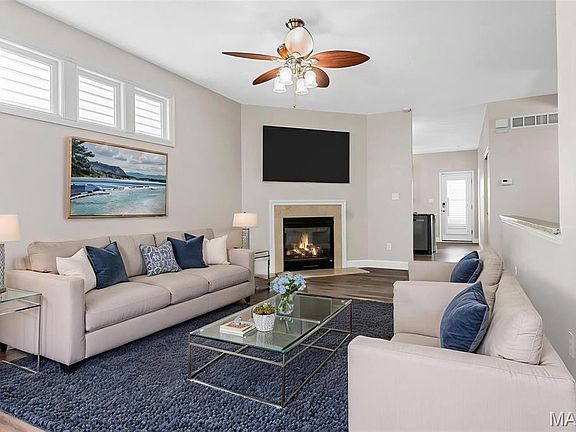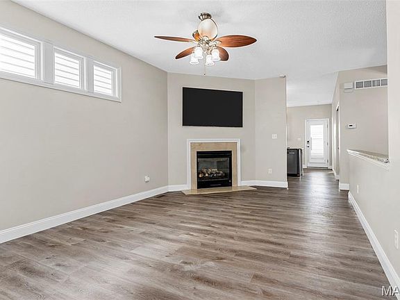 Stop the car! This cutie in New Town has over 2300 sq ft of living space. New HVAC installed 9/2024, updated luxury vinyl plank throughout main level with 5" baseboards. Kitchen offers granite countertops w/bar overhang, custom tile backsplash, under cabinet lighting, stainless steel appliances, brand new dishwasher & eat-in breakfast area. Custom plantation shutters throughout main level with gas fireplace in family room. Large primary bedroom suite with additional bedroom & full bath and large laundry room round out the main level. Open staircase to lower level expansive bedroom/office with egress and great recreation room and half bath. Tons of storage space & enough room to add an additional bedroom with egress! Relax on your front porch swing or on your back patio with fenced private yard. Make your private viewing appointment today, this one won't last long!