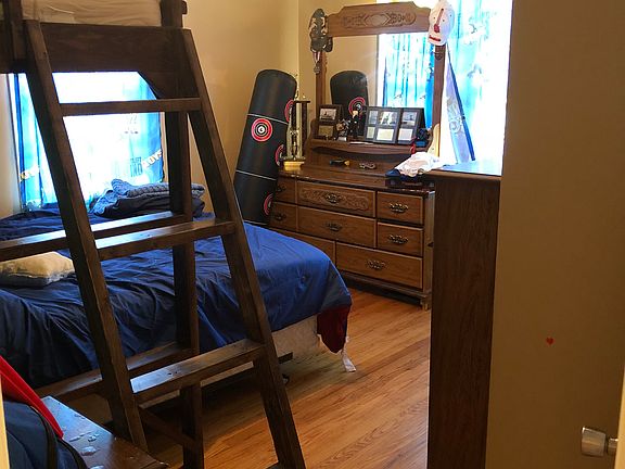 Single story ~ 1250 sq ft 3 bedroom 2 full baths Full laundry room (was actually the smallest room of the house and we turned it into the laundry room) Kitchen/living room open floor plan Hardwood, linoleum and vinyl flooring Fenced back yard Quiet neighborhood and great for kids. Not a lot of thru traffic We renovated 1/2 the house 4 years ago.