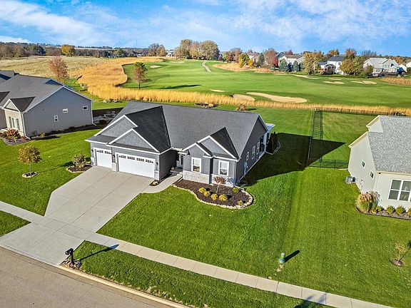 Prepare to be charmed by this delightful ranch home, strategically perched to oversee all the golfing action on the serene 2nd Hole. With its open floor plan, four bedrooms, and three full baths, this property serves up a winning combo of comfort and style, as if it were designed by a golf-loving interior decorator. As you stroll inside, you'll be spellbound by the inviting atmosphere and clever design. The kitchen takes center stage with its vaulted ceiling, sleek gray cabinets, and a spacious entertainment island that's so fantastic it could rival your own caddy for the title of "Best Support on the Course." The primary bedroom and its ensuite bath are strategically positioned just off the kitchen, ensuring a peaceful and private retreat that's as secluded as a well-placed bunker. The laundry room doubles as a clutter-fighting champion with its convenient drop zone and ample storage space. Venture downstairs to discover the lower level, a true treasure chest of surprises. It's home to a bedroom with its very own bath, complete with a jetted tub that's so relaxing it could turn even the most energetic golfer into a Zen master. A versatile sitting room or game room leads to the spacious family room, the perfect arena for hosting your 19th hole celebrations. And if you've got a collection of "favorite things," don't worry - this home has storage galore to accommodate all your treasures. Take a swing outside and bask in the beauty of the great outdoors right on the 2nd Hole at The Den Golf Course. The property offers not one but two patios - one with a charming pergola and a firepit, setting the stage for delightful outdoor dining and a touch of fiery entertainment. The other patio is home to a hot tub, which will stay with the property, providing you with your very own starlit hot tub retreat - perfect for post-game relaxation. Come experience new oasis in the Fox Creek Subdivision. Schedule a viewing today and make this dream home yours before someone else puts their name on it! Home has a Ring Door Bell.