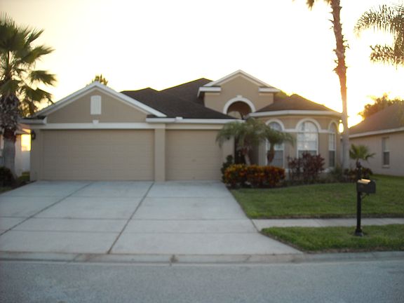 Beautiful 3 bedroom, 2 bath, 2.5 car garage, pool home in Plantation Palms community. Floors have all been updated with 18 " Travertine Tile and 8" wide engineered wood laminate flooring. Very open floor plan with sliding glass doors to an amazing screened in pool area. Kitchen has all stainless steel appliances with plenty of counter top space and 42 " tall cabinets for extra storage space. Separate laundry room off the garage. Large master bedroom with walk in closet, updated master bathroom with garden tub and walk in shower. Home also features a 4th room which can be used as spare bedroom/office. Newly painted exterior and just installed brand new Carrier AC system. Home has been well maintained and very clean.