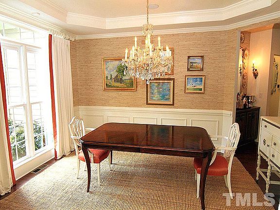 Custom-built home with great light and tall ceilings, convenient but quiet location to downtown Raleigh, RTP, Rex Hospital, PNC Arena. Enormous master suite with dual closets and vanities, plus an office/yoga/quiet spot. Extra large well-landscaped lot with side-entry garage, patio with gardens plus firepit and play area. Transitional style with open kitchen, coffered & vaulted ceilings. Kitchen/living areas face east and south for abundant light, especially the huge private side porch. Wired for today.