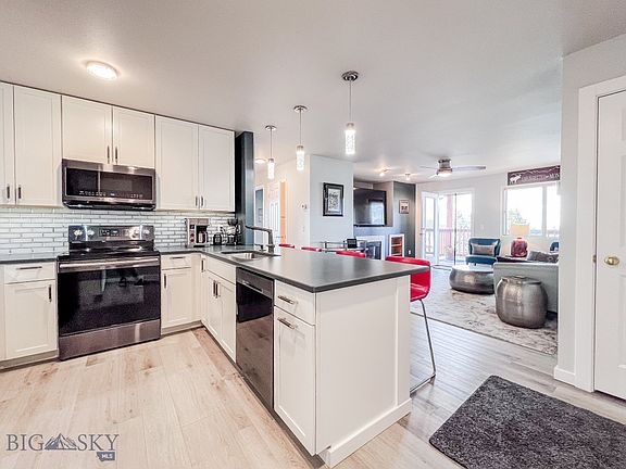 Welcome to your dream home in the heart of Bozeman! This beautifully remodeled 2-bedroom condo boasts over $25K in upgrades, making it move-in ready for your convenience. Nestled in a highly sought-after area with stunning mountain views, this property is perfect for those looking to enjoy everything Bozeman has to offer. Step inside and be amazed by the stunning open floor plan, where the kitchen flows seamlessly into a cozy living room. The modern kitchen is complete with brand new appliances, custom cabinets, and sleek quartz countertops, making it perfect for entertaining guests. The large kitchen island provides ample counter space, while the large windows allow plenty of natural light to flood the space. After a long day of exploring the nearby shopping and trails, relax in the comfort of your living room and enjoy the cozy warmth of your gas fireplace. Or, step outside onto the third-floor deck and admire the breathtaking mountain views that surround you. This property also comes with a detached single-car garage, providing additional storage and parking space for your convenience. Don't miss your chance to own this stunning property. Contact us today to schedule a showing and make this your next dream home!