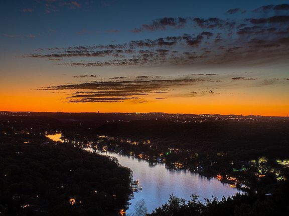 Awe-inspiring views of Lake Austin & the rolling hills. Award-winning contemporary design set amongst verdant trees. Published in Texas Homes, the AAS & participant in the 1994 AIA Tour this residence was designed by the renowned, late architect Alan Y. Taniguchi. Modern styling & private setting are complemented by sleek finishes. Lake views from major rooms, windowed elevator, viewing tower, decks, designated guest quarters, and custom finishes throughout.