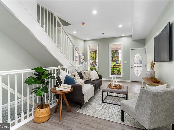 A beautiful transformation has taken place behind the walls of this 4BR/3.5BA semi-detached Townhome located on a tree-lined street in Garwyn Oaks. Make your way to the covered front porch with a newly painted exterior and open the door into your forever home. The main floor is the open concept floor plan homeowners are seeking featuring plenty of natural light, a soft color pallet, luxury flooring, and recessed lighting. This floor features a spacious living room open to the dining room, a half bath, and stunning kitchen. The kitchen offers plenty of cabinets, sleek quartz countertops with a complimenting tiled backsplash, stainless steel appliances, and a stainless sink set into the peninsula which features pendant lighting and breakfast seating for two. The second floor is newly carpeted offering two sizable secondary bedrooms, a newly remodeled full bath, and the primary suite. The primary offers a spacious bedroom with tons of natural light and a private full bath. The open staircase leads to the finished lower level offering the fourth bedroom, a full bath with walk-in shower, laundry, a large family room, storage, and a walk-out to the fenced yard. From the kitchen step outside to a covered patio that overlooks a yard filled with possibilities. This home is move-in ready, ideal for any new homeowner, and is conveniently located in close proximity to shopping, restaurants, and commuter routes.