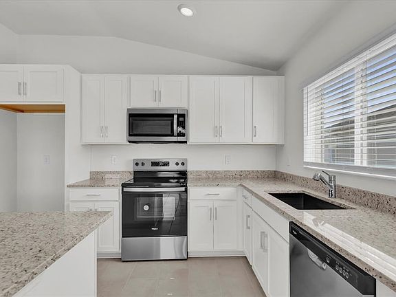 Granite countertopsConnecting bathOpen floor planCovered back patioExpansive volume ceilingsWell-appointed kitchenTile flooring