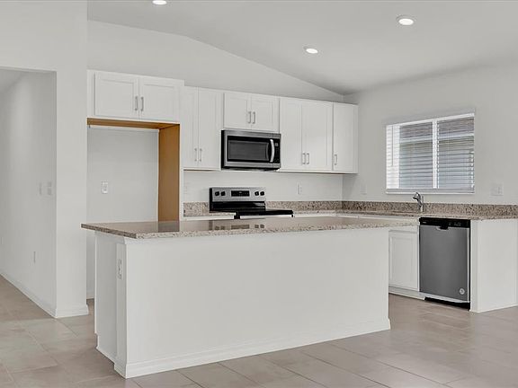 Under contract-accepting backup offers. This stunning, single-story home showcases an open floor plan with tile flooring and expansive volume ceilings. The well-appointed kitchen includes an island, Dallas White granite countertops, a Moen® chrome faucet, a Kohler® sink, Whirlpool® stainless steel appliances and 36-in. upper cabinets with polished chrome hardware. Relax in the primary suite, which features a tray ceiling, walk-in closet and connecting bath that offers a dual-sink vanity, linen closet and walk-in shower with tile surround. The covered back patio provides the ideal setting for outdoor entertaining and leisure.
