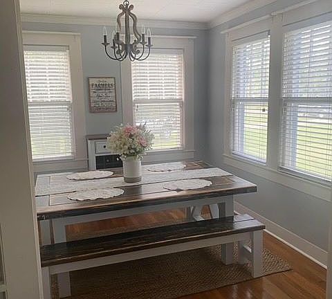 Beautiful 3 bedroom 2 bath home located convenient to town and shopping. New AC unit and new roof. Very well maintained with lots of updates located on 2.3 acres. Fenced in back yard. 2 storage sheds. Beautiful Original hard wood floors.