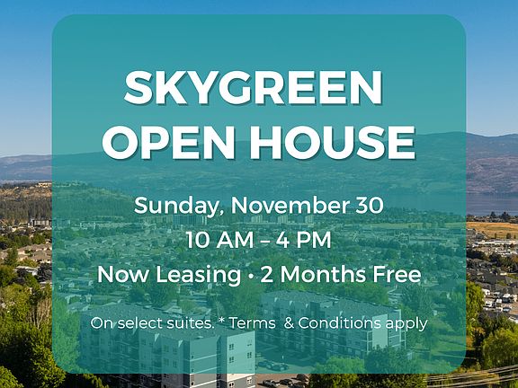 - Skygreen Open House | November 30 | 10AM - 4PM - Join us at our upcoming open house for guided tours, delicious appetizers, and refreshing beverages.