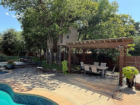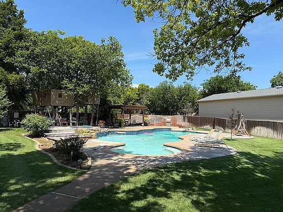 This home has it all. Sought after 1-level in Tall Oaks, beautiful wooded lot, 4 living areas, 4 Beds & 4 Baths. Scored/Stained concrete floors. Huge gameroom with a bar, Master has own living. Kitchen is updated with granite and SS appliances. Pool with outdoor grill area and covered gazebo. Home is so fun for entertaining you really never have to leave. All BR's have their own full bath. Sprinkler & pool on well. Storm Shelter.Too much to list!