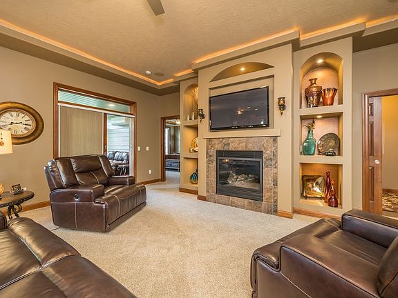 Outstanding quality built Kruetzfeldt construction twin home featuring 3 bedrooms, 1 office no step entry. Very spacious ranch style twin home. Upon entering the front door you will be greeted by a large open living room featuring 9' ceilings, attractive accent lighting, custom crown molding, a floor to ceiling gas fireplace with built in shelves, attractive and durable tile flooring throughout the high traffic areas. Kitchen features custom birch cabinets, new granite counter tops, glass back-splash, a center island and new appliances. Extra living space was created by adding the four season room equipped with a "mini split" which controls the heating & cooling for this room. Huge master bedroom complete with 9' ceilings, crown molding, accent lighting, a private bath with whirlpool tub & large walk in closet with laundry hook ups. A spacious lower level family room / rec room, a large 3rd bedroom, a 3rd full bath, & an extra room with french doors complete the lower level. Beautifully landscaped yard with privacy fence & lawn sprinkler.