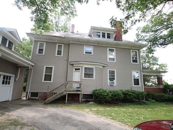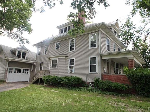 Rare opportunity to purchase a 4 unit historical home on large corner lot. Amazing home with 3 one bedroom units and 1 two bedroom unit with a range & refrigerator in each. Main floor 2 bedroom unit is currently rented month to month for $400 and tenants are interested in staying. 5 divided electric meters, Newer vinlyl siding, & Newer Garage Roof. Hot water heat in each unit. Detached 2 car garage. Great investment opportunity in this four plex! Large basement that is perfect for storage!