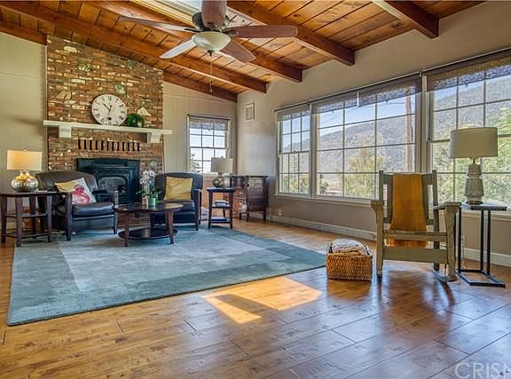 Stunning single story view home located in the mountain community of Frazier Park. Over 2,000 sqft, 4 spacious bedrooms with 2.5 baths. Situated on a nearly 10,000 sqft corner lot! Charming tongue and groove vaulted ceilings greet you upon entry. An abundance of natural light shines through the perfectly placed skylights. Hardwood flooring and tile throughout. Elegant brick fireplace with stove insert offers optimal heat on those cold winter nights. Incredible views of the surrounding mountains from the comfort of the living room! Spacious kitchen features oak cabinets, center island with butcher block top, double ovens, and fantastic view to the backyard. 2 guest rooms share a Jack and Jill bathroom. Laundry room with sink centrally located inside the home. Large bonus room for additional living or storage space. Large primary bedroom offers stunning views, dual closets, and private bathroom complete with separate shower and tub. Front yard offers large grass area with views. Backyard features impressive hardscape with fountain for that perfect ambiance. Large workshop or possible ADU offers limitless potential. Detached 2 car garage with easy access. Phenomenal location often regarded as the "sunny side" of Frazier Park for optimal sunlight. Close proximity to Frazier Park Elementary School, restaurants, and the center of town! only 45 minutes away from Santa Clarita!