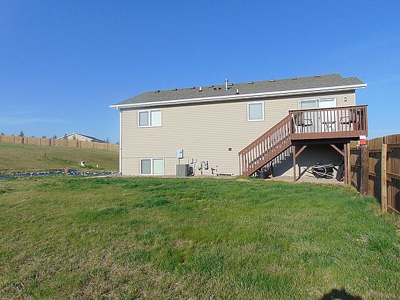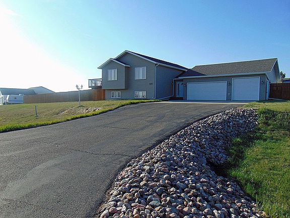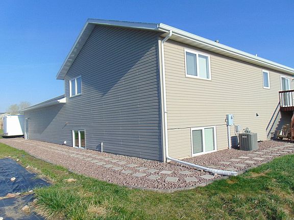 House for sale in the desirable rural neighborhood of Southridge Lane. Located minutes outside of south Bismarck, walking distance to the University of Mary and close access to water recreation. This house was built in 2004 boasting 4 bedrooms, 4 bathrooms, and a 3-stall garage situated on a 1.49 acre lot. Upgrades include quartz counter tops, walk-in-closets in all bedrooms, a fully fenced backyard with reinforced timber, custom sprinkler system for yard and garden and much more. The main living space flows with access to the kitchen, living room, and dining room area in a contemporary open concept layout with a vaulted ceiling. The kitchen features Zenith white and gray quartz counter tops, dark gray subway tile back splash, and a new stainless steel sink. Kitchen island has an over-hang with custom rounded corners to accompany bar stools. New paint, window coverings, and luxury vinyl flooring can be found throughout the home adding warmth and beauty. Both the master bathroom and guest bathroom on the main level contain Zenith white and gray quartz counter tops and new square sinks. The basement living room is also an open concept area that can be set-up for your needs. The basement bathroom also contains Zenith white and gray quartz counter tops, new square sink, and a custom vanity for extra storage. The under-stairs area and furnace room provide extra storage. The backyard has a large deck and an expanded area of patio pavers and custom rock pad. The backyard garden has a heavy duty fabric stretched across the length of it to eliminate the tedious task of weeding. The fence was built with a custom opening which when both sides are fully opened is 20 foot wide to allow for large equipment and trucks to access the backyard with ease. This yard has been set-up with a drip irrigation system for the trees; custom sprinklers surrounding the garden, and an overall watering system for the grass. New roof and gutters installed in 2018, new air conditioner installed in 2016, and new garage doors. This house has tons of charm, privacy, and quiet rural surrounding while offering city amenities minutes away. Contact us to schedule a walk-through!