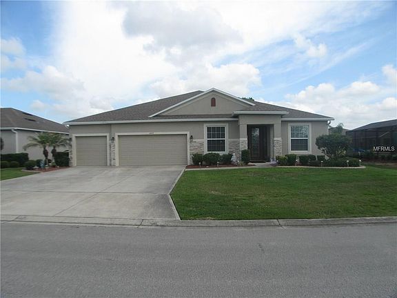 Price reduction.This well maintained home looks as good as it was when it was new. It is one of the nicest homes in the neighborhood!! Notice the curbing at the front door, irrigation system, glass inserts in the front door, 3 coach lights on each of the 3 doors on the garage. As you enter you will see the 9 ft. ceilings, tile laid in a brick pattern. This home boasts a 528 sq.ft. secured and closed in Lanai with acrylic windows with side slide panels, 3 car garage, huge kitchen with plenty of cupboards and granite counter tops, pendant lights, upgraded pull-out faucet. Kitchen is open to the great room which gives it that open feel. The home has great light with tilt windows for easy cleaning! Ceiling fans with remotes to make things easier. Kitchen has an eating area along with a breakfast bar for the family. The 3 car garage gives you plenty of extra space for storage or a 3rd vehicle. The master bedroom is split from the other bedrooms for privacy and quiet also, a walk in closet, Double sinks, large shower and tub in the master bath with ceramic wall tile. 2 of the other bedrooms are a Jack and Jill for a growing family. Home was built in 2014 so everything is in great shape, roof, A/C etc. The neighborhood is well maintained and close to shopping, major highways, golf and much more. THIS HOME WILL GO FAST!! Please don't wait too long.