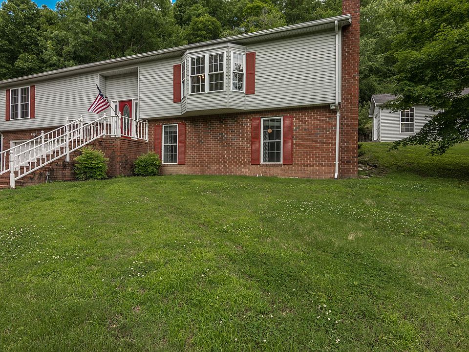SEE VIDEO! Very unique home on 1.3 acres in a wonderful setting. Country bridge crosses a creek as you approach the home. Open floor plan with Vaulted ceilings throughout. Kitchen has stainless appliances and granite counters. Very Large sunroom on the rear of the home. Lots of storage and also a detached workshop/shed. Great home for entertaining!