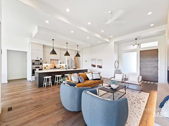 Introductory pricing sale going on now! Welcome to Eagle, ID's newest neighborhood, Whitehurst! All new single level home by ZEC! Layout includes 3 bed, 2.5 bath, flex room & oversized three car garage. Open concept great room has 12ft ceilings. Kitchen is great for entertaining with 13+ft kitchen island! Situated on a nice corner lot with no immediate rear neighbor & right across from neighborhood open space allowing you to stretch out. Extra landscaping for privacy and lushness. Home is bright and open with south backyard for abundance of natural light. Large patio and front porch for year round outdoor living. Flex room could serve as a 4th bedroom if needed. Amazing location near Eagle amenities & right across from 545 acre Eagle Island State Park which has hiking & biking trails, ponds, water park, beaches, zip line, disc golf, paddle boarding & more. Neighborhood features pond, park, walking paths and playground. Come check out the latest in features, designs, and architecture!
