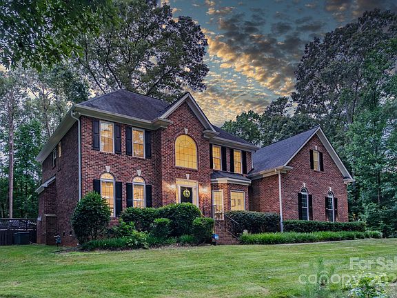 This coveted two-story, full-brick custom-built home is located in the Weddington School District. Nestled on over 1.5 acres of land with no HOA, it boasts four bedrooms and 2.5 bathrooms, along with custom upgrades throughout. The first floor features an open floorplan with hardwood floors. The kitchen showcases white cabinets with granite countertops, tile backsplash & walk-in pantry. Kitchen sink includes instant hot water faucet. Great room has gas fireplace and mantle. The primary bedroom includes an en suite and walk-in closet. The bonus room and playroom upstairs have their own staircase. Outside, enjoy the pool with wrap-around decking or unwind in the screened porch. Stamp concrete fire pit. The oversized three-car garage includes a custom cedar-lined storage closet. The home is updated with new energy-efficient windows complete with custom blinds, two new AC units and furnaces, and a tankless water heater.