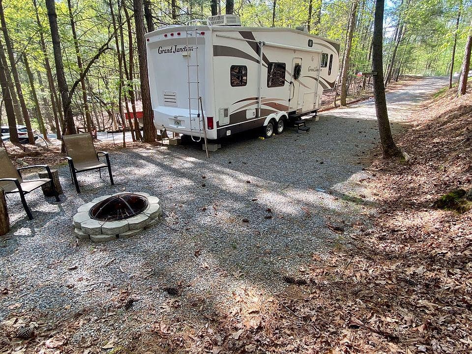 Look no further for your affordable Mountain Retreat. 29' Grand Junction. Comes Furnished!! This level lot backs up to green space so you can enjoy nature all around you. Outdoor fire pit. Lot includes a roomy, well insulated fifth wheel with loads of cabinet space and washer/dryer hook up. Master has queen bed with plenty of room to walk around. Underneath storage. Move in Ready-Just bring your coffee, clothes and tooth brush! Plenty of parking! This RV lot is located in the beautiful Coosawattee River Resort with amenities such as river access, gated entrance, 3 pools (one indoor), tennis/basketball courts, mini golf, parks, pavilions, and walking trails. In the heart of several wineries, eateries, antique stores, hiking and biking trails.