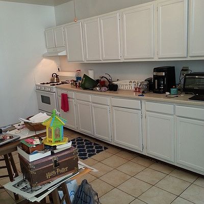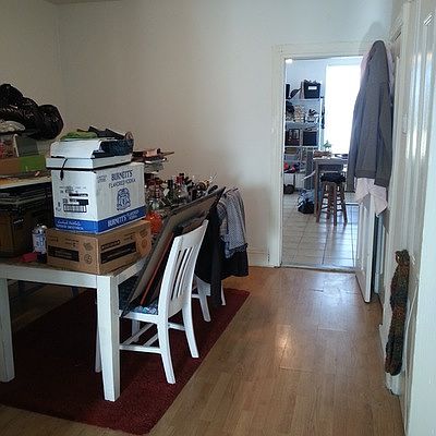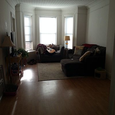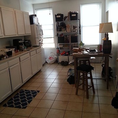 top floor of townhouse, huge kitchen with tons of cabinets and counter space, gigantic living room with baywindows, Queen size bedroom, smaller bedroom/office, steps to R train at 45th st