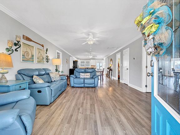 Ready for rental season, this fully furnished, outstanding beach home with AMAZING Sunset views is ready for its new owners. Grill your dinner on the expansive back deck during the fabulous sunsets. Move-in Ready, 4 BR 3 BA Beauty with Private Dock. Open Floorplan with solid flooring throughout, granite in kitchen and all baths, celing fans in all BR's and livng areas make this an awesome choice as your own personal home or a fabulous rental. Check out the Master Shower, beautiful new tiled walk in shower and garden tub. The Outdoor Entertainment area is truly an invitation to relaxed living. Hop on your boat, just a step out of your back door, and go fishing or enjoy a beautiful sunset cruise. There is a HUGE storage room on the ground level, an amazing amount of storage and work area. An outdoor Shower to clean everyone(including the four legged ones) after that big day out fishing or spending the day on the beach(couple blocks away). Irrigation. Golf cart ride to shopping, beach(if you don't need the steps that day)and many restaurant options as well. ALL Heated Living Space is above the flood zone level. This property hasn't been rented by current owners.