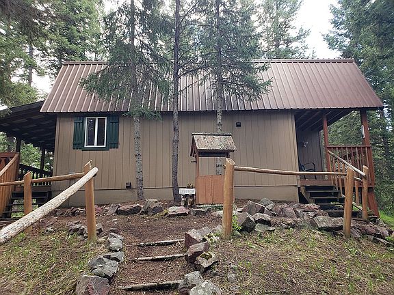 3BR / 1Ba Completely Furnished If your looking for peace and privacy, look no further than this COZY CABIN/HOME on 1.32 WOODED ACRES overlooking a huge POND where Canadian geese fly into and wildlife is plenty. The three-bedroom, 1bath cabin/house has everything you need to stay the weekend, or a lifetime! The main floor has an open kitchen - dining - living area with nice newer matching appliances that include refrigerator, dishwasher, flat top stove, and microwave. There's an electric stove for heat in living room and cadet heaters in each of the bedrooms. A laundry area with washer and dryer, a bedroom and full bath are also on the main floor. COVERED PORCHES on the front and the back of the house provide you with opportunities to view wildlife traveling through. There's also another uncovered party deck off the side of house. UPSTAIRS are two more bedrooms - one with a private balcony. A 24x35 GARAGE with work and storage space plus loft is adjacent to the house. This home has been NICELY MAINTAINED and will come completely furnished with nice furniture and just about everything else you will need, blender, dishes, all bedding, will even be including the pedal boat to use on the pond. (A small portion of huge pond which is fed by a year round spring and has had fish in it, is on property) So, all you will need would be your toothbrush and clothes. Septic has been recently pumped and it is on its own well that generates 30 gpm per well log. Also, we did use this briefly as a VRBO, so if you want to go that route that's definitely an option. We really hate to let this go, but we feel life is taking us a different direction. Serious inquiries only. Update: Currently asking $399,000. However, thinking of listing with a realtor and if so, will be increasing price. Please text or call 406-253-2624 406-609-6868