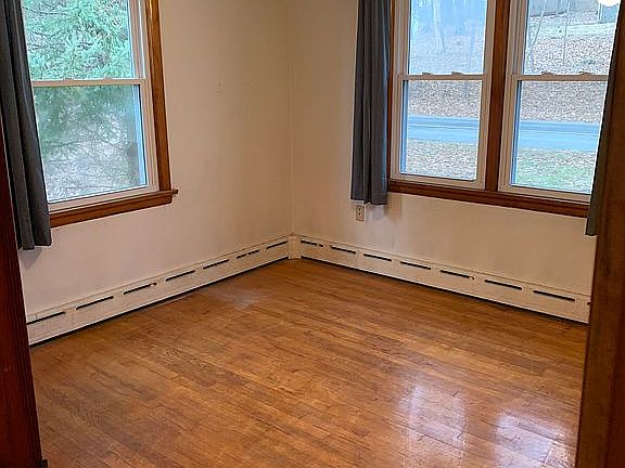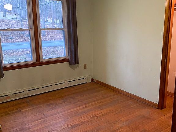 4 Bedroom 1 1/2 bath 2 car detached garage upper and lower level and one car garage on lower level .Walk out basement. Laundry hook up in basement . Working fireplace,oil hot water heat with cast iron baseboard radiators,newer 275 gal fuel oil tank in basement. Has a beautiful oversized deck over looking secluded woods (beautiful sunsets/sunrises are a given) Lot size 1.7 acre has a small barn ,accepting offers, priced to sell. Any commission with a buyers agent will be the responsibility of the buyer. Home can be absolutely beautiful with a “little” work but for the land and location you can’t beat it. The 4th and largest bedroom is under remodel (it was started but unable to finish- need to sell due to divorce) as well as the second “full” bath. It’s a perfect set up for the new owner to complete the rooms how they want it.