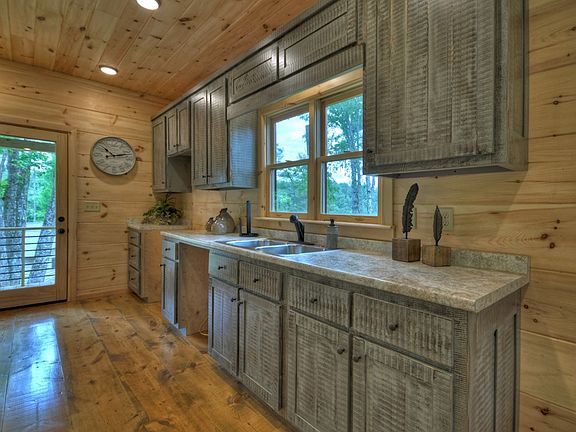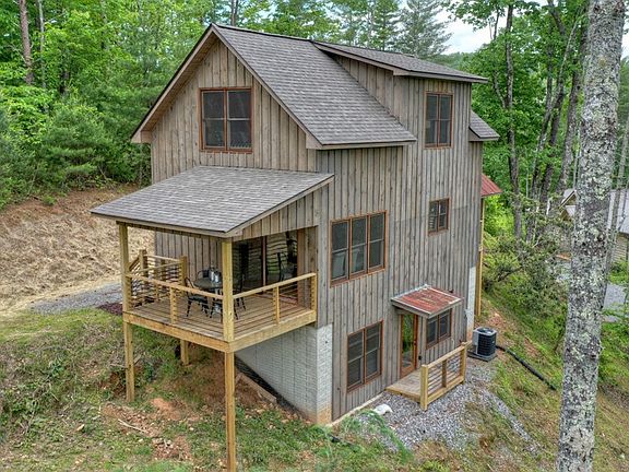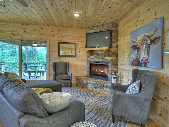 The ultimate mountain views... Situated on a 2.84 acre lot with long range layered mountain views, lake frontage, end of road privacy, and only 10 minutes from downtown Blue Ridge, this newly built cabin is ready to move in- and the only thing missing is you! This home features an open floor plan on the main level and includes gorgeous hardwood floors, stacked stone fireplace, plenty of cabinet space in the kitchen, and a half bath and laundry. Upstairs offers a full bedroom and bath along with an extra open area that could be used as extra sitting space or even a media/game room. Down below on the terrace level you will find a full bedroom and bath along with an extra room that is currently set up as a bedroom. Enjoy the most gorgeous mountain views in the area from your back deck where you can enjoy time with family and friends. With a perfect location and perfect price, this one will not last long. Come take a tour before it's gone!