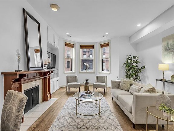 Oversized and turnkey in prime location on the corner of Beacon x Fairfield, this historic Beacon Street brownstone condo is a must see! Open concept floor plan with lofted ceilings, freshly refinished hardwood floors throughout and an abundance of natural light come together to make this unit the ideal upscale living space for anyone seeking quiet luxury and a place to comfortably entertain at home. Renovated kitchen features maple cabinetry, Bosch appliances, and granite tops. Newly finished bathroom with marble floor and wall tiles, built-in niche and shower bench, and large vanity. Brand new in-unit washer and dryer. Generously sized bedroom with a large walk-in closet with built-in and overhead storage. Bay windows with southern exposure offer views of Prudential center and the benefits of privacy and quietness, tucked away adjacent Beacon St. Central AC. Building is professionally managed, pet-friendly, with elevator access and separate storage area. This unit truly has it all!