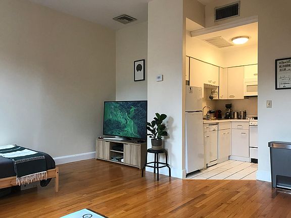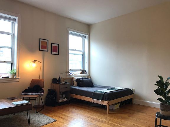 5th floor of elevator condominium building. South facing with great sunlight and views of the Prudential building through extra large windows. Unit features full kitchen with dishwasher, high ceilings, central a/c and heat and built in shelving for storage. Building features Washer and Dryer in basement. Available 9/15 or 10/1
