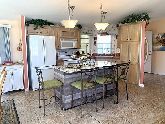 Lot 341A Furnished 2/2 with a office/den Move in ready! This fully furnished 2/2 home has a lot to offer with a private office/den space + a screen room out back that over looks the ! The open concept living area with a large island with seating and a dining table and leads to the screen room out back & covered patio in back yard! The office/den features a double French door entry and a desk and a futon. With an inside laundry room just down the hall next to the Guest bath and guest room and the primary suite with a large bathroom with a garden tub and a step in shower with seats. Move in ready! Next Adventure ~ New Memories Community Events Community Dances • Bingo • Holiday Dinners • Day Trips Potlucks • Trivia Nights • Ice Cream Socials & More! Benefits of Ownership Active H.O.A. with Optional Membership On-Site Management • Being in the Rickert Properties Family! Amenities 2 Heated Pools • Spa • Outdoor Kitchen/Grill • Library Fitness Center • Pet Friendly • Clubhouse • Pier w/Pavilion Billiards • Smart TVs • Wi-Fi • Boat Slips • Shuffleboard Stay Active Line Dancing • Book Club • Pool Exercise • Cards & Games Chorus • Darts • Chair Aerobics • Golf • And Much More! Next Adventure ~ New Memories