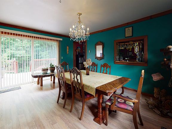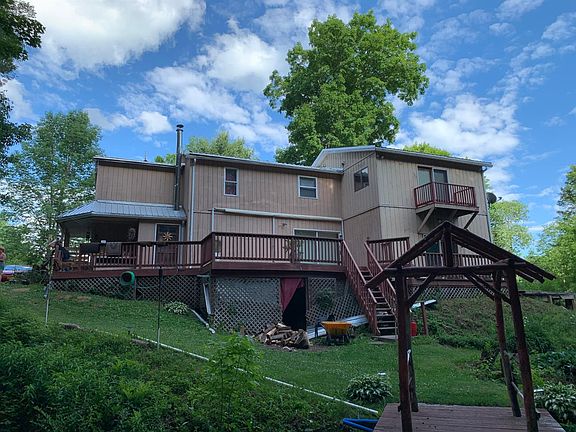 PEACEFUL SERENITY! OUTSTANDING PRIVATE SETTING! UNIQUE, SPACIOUS, 4 bedroom, 2.5 bath home! offers multiple living spaces indoors and multiple, appealing spaces outdoors. HIGH SPEED FIBER OPTIC LINES INSTALLED For the naturalist creative. check this property out! Inside you will find a kitchen, formal dining room, a custom built, full size wet bar for entertaining, a sunken living room, french doors to an expansive wrap deck over looking the babbling brook which has a bridge to take you to the other side. House offers an ensuite with doors to private upper deck. The basement is walk out and features another living space. Property has creekside perennial gardens, lighted walking paths, garden, small pond and a large 2 car+ man cave set away from the house. There is long road frontage, wooded setting 1.6acres. There are no close neighbors, Look for the link to 3D photography.