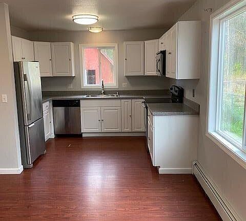 Side by side two story units. Living area downstairs with 1/2 bath , laundry room and fireplace. Upstairs has 3 bedrooms and full bath. Being cleaned and windows will be done by the end of the week