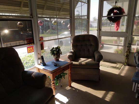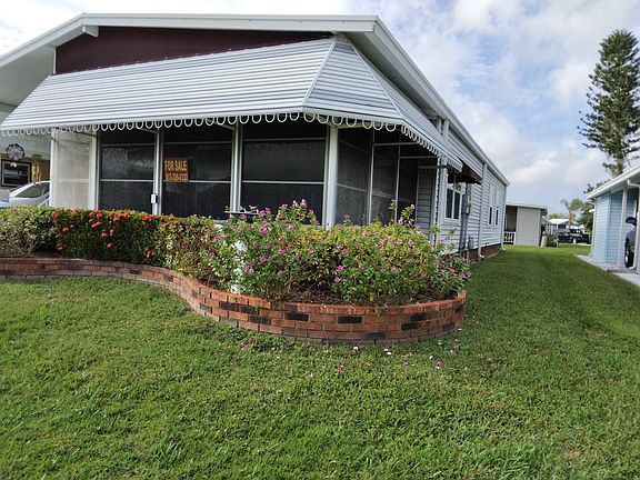 PRICE REDUCED! Here is a 2 bedroom, 2 bath home within walking distance of the clubhouse, pool, and all amenities. You can enjoy many hours relaxing on the large front lanai, with an awning that provides plenty of shade from the hot summer sun. The living room is adjacent to both the dining area and kitchen, and large enough to allow many options for furniture arrangement. The dining area has wrap-around windows that provide plenty of sunshine and a full view of the outdoors. The kitchen has more than enough cabinets for storage and countertops for meal preparation. There is a pantry and laundry closet conveniently located at one end. The guest bedroom is a comfortable size and conveniently located directly opposite the guest bath. The large master bedroom is located at the rear of the home, and has an en-suite bath. The home has double-hung insulated windows throughout and a lifetime membrane roof. The air conditioner is 12 years old, and the water heater is 14 years old. The washer and dryer, as well as the refrigerator, are 5 years old. This 1232 sq ft Palm Harbor home is being sold partially furnished/turnkey. The lot rent is $849.20 which includes mowing, trimming, extended cable TV with two HD cable boxes and internet service. This home is located in The Gardens, a premier 55+ community. The spacious resort-style clubhouse includes a ballroom, billiard room, crafts room, library/card room, media room, and a fitness center. Outdoor amenities include an Olympic-size heated swimming pool, hot tub, fire pit, outside kitchen, tennis courts, and shuffleboard courts. There are golf, bowling, and softball leagues, horseshoes, pickle ball, monthly dances with live entertainment, and many other activities too numerous to mention. Call today to make an appointment to see this home. All listing information is deemed reliable but not guaranteed and should be independently verified through personal inspection by appropriate professionals. Integrity Mobile Home Sales cannot guarantee or warrant the accuracy of this information, measurements, or condition of any property. Measurements are approximate. Lot rent is subject to change!